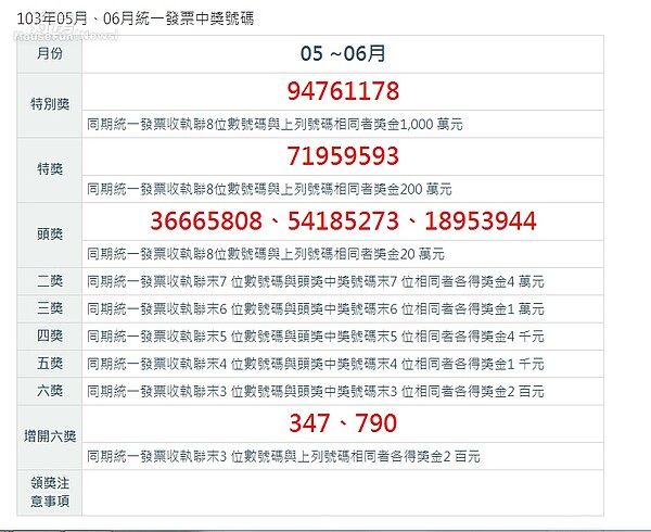 Jul 25, 2021 · 5、6月統一發票中獎號碼今(25日)開出,特別獎號為51118051,全數對中可獲獎金1000萬元,本期中獎發票於8月6日開始兌獎,截止日為11月5日。特獎獎. 1 click to fix iphone/ipad recovery mode, bootloop, dfu, black screen, etc. 百萬元獎中獎清單pdf檔 (已排序) 兩千元獎中獎號碼清單pdf檔 (已排序) 五百元獎中獎號碼清單pdf檔 (已排序) 1 click to fix iphone/ipad recovery mode, bootloop, dfu, black screen, etc. May 25, 2021 · 200元. Tenorshare.net has been visited by 100k+ users in the past month 16 hours ago · 財政部賦稅署表示,5~6月期統一發票領獎期限為今年8月6日至11月5日。 另外,5~6月期統一發票3組頭獎(獎金20萬元)中獎號碼為「27461411」、「99831976」及「10229515」;二獎(獎金4萬元)與頭獎末7碼相同;三獎(獎金1萬元)與頭獎末6碼相同;四獎(獎金4000元.