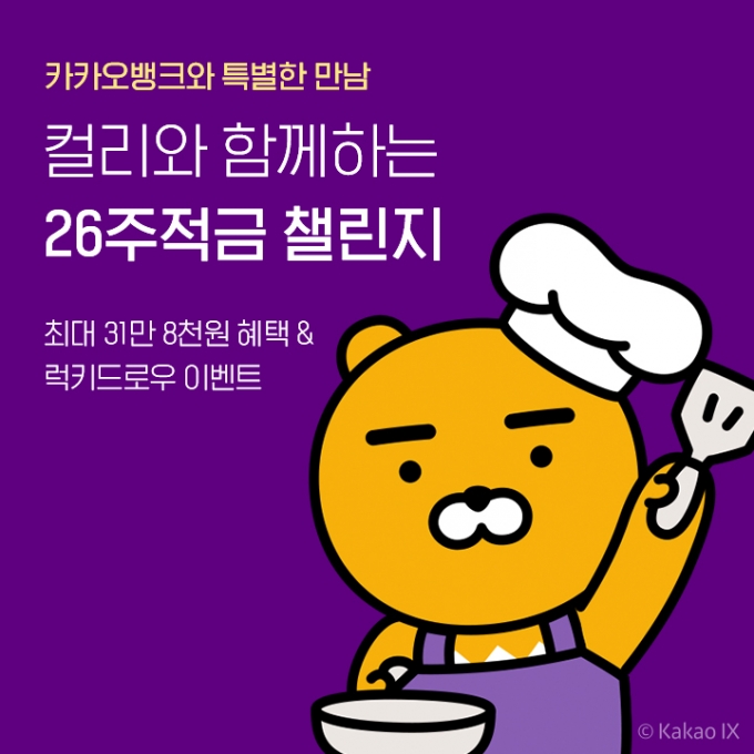 26주 적금 만기를 달성하면 본인 명의 카카오뱅크 계좌로 이자만큼 캐시백을 받는 방식이다.